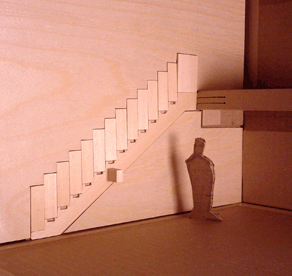 A escada possui um sistema de dobradiça, que o usuário pode abrir ou fechar, aproveitando melhor o espaço.